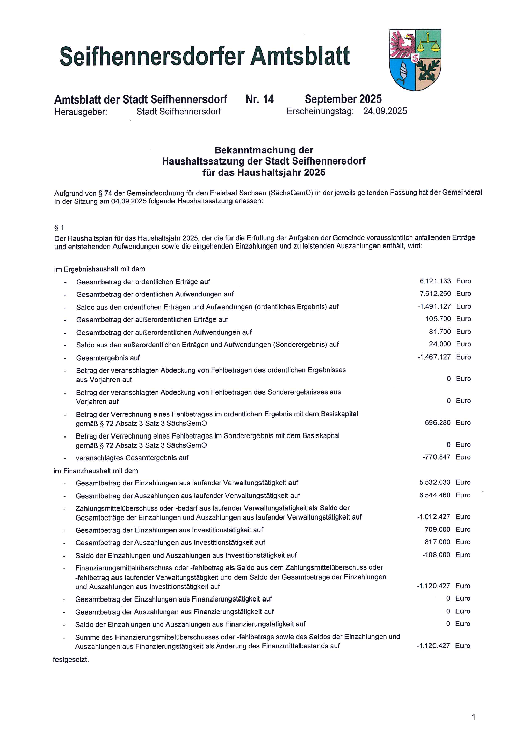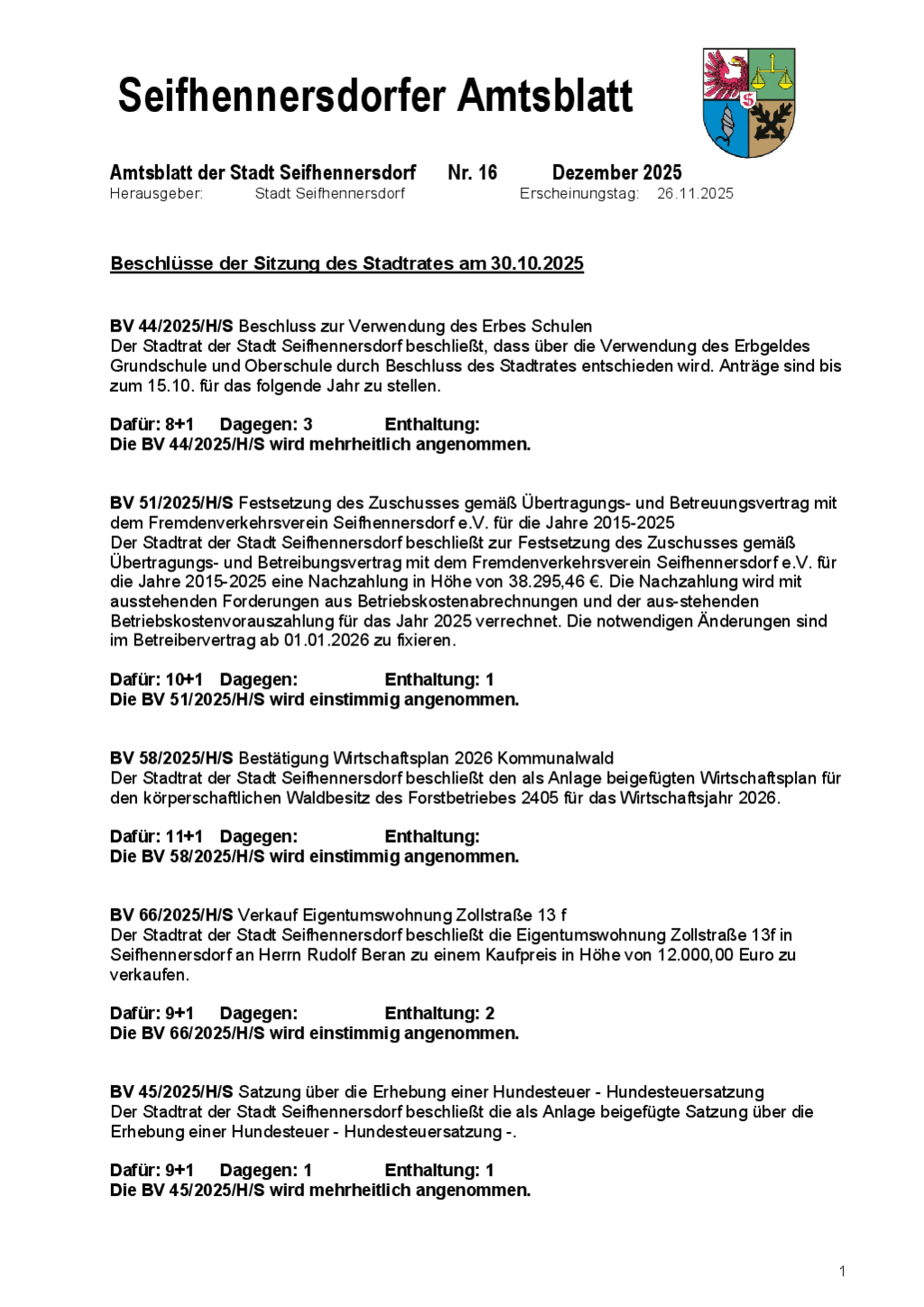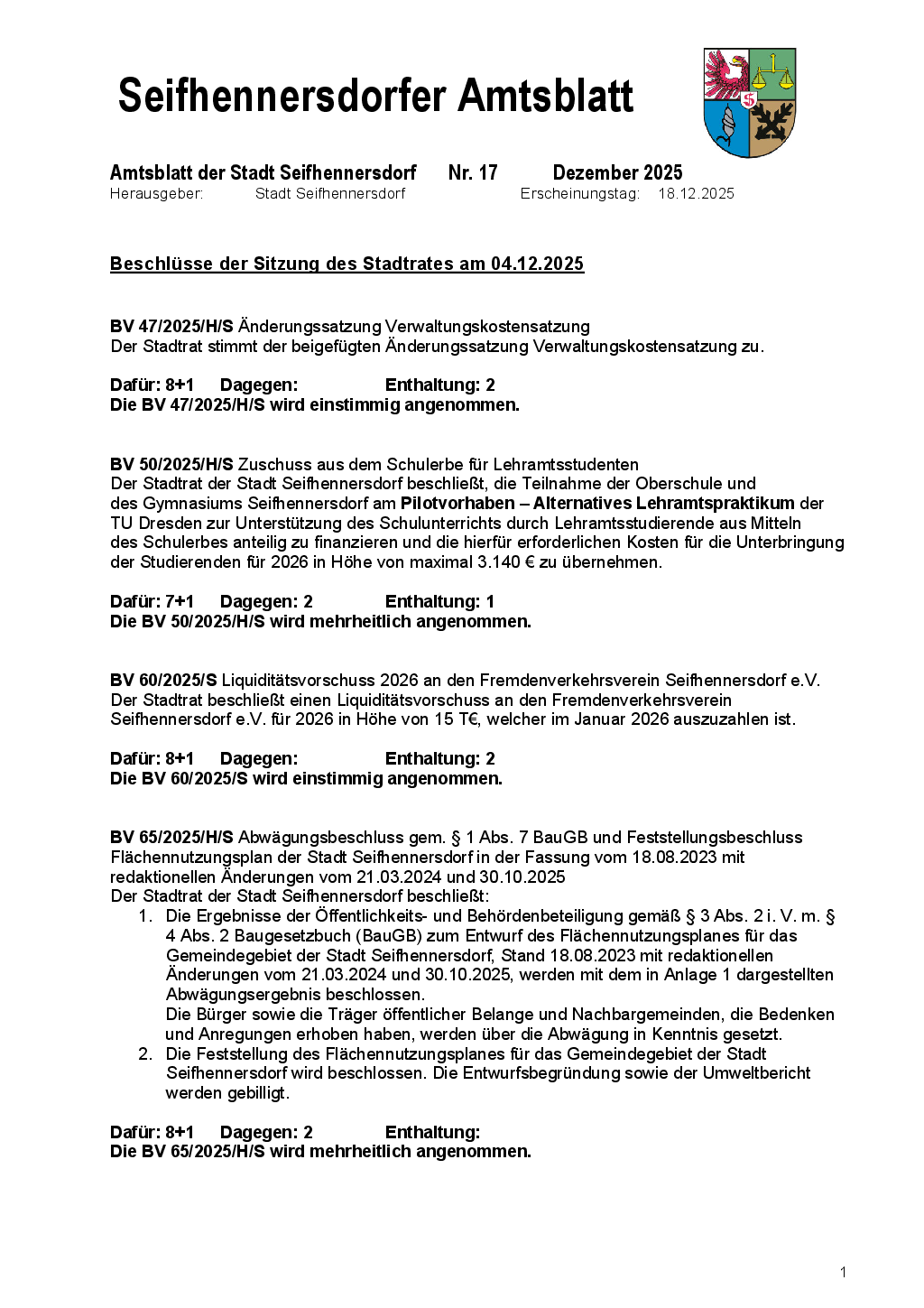 Das Amtsblatt der Stadt Seifhennersdorf ist ab dem 01.01.2023 ein elektronisches Amtsblatt welches über www.seifhennersdorf.de/amtsblatt zur Verfügung steht.